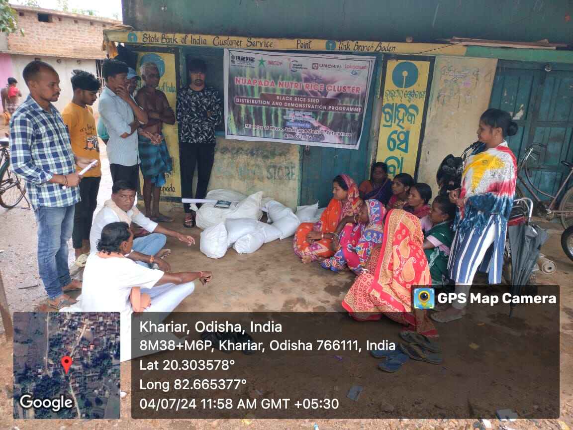 In July 2023, we organized four training programs for farmers focused on Black Rice and Protein Rice in the villages of Palsada, Sargimunda, Budhapada, and Morgaon within the Boden block. A total of 100 farmers participated in these sessions, comprising 73 females and 27 males, enhancing their understanding of best practices for cultivating black and nutrient-rich rice. The training primarily aimed to educate farmers on the cultivation techniques for black and nutrient rice. The curriculum included topics such as land preparation, organic compost application, seed germination and nursery management, main field preparation, transplantation, bio-fertilizer and hormone application, second dose fertilizer application, tiller pruning, hormone application during the panicle bending stage, and harvesting. Given the market demand, cultivating black and nutrient rice is recommended as a strategy to increase farmers' income. The primary goal of this training is to equip farmers with comprehensive knowledge about our cluster, which will provide them with the necessary cultivation resources and help them reduce reliance on middlemen. The implementing agency will supply black rice and protein rice seeds to the farmers and offer thorough training on their cultivation.