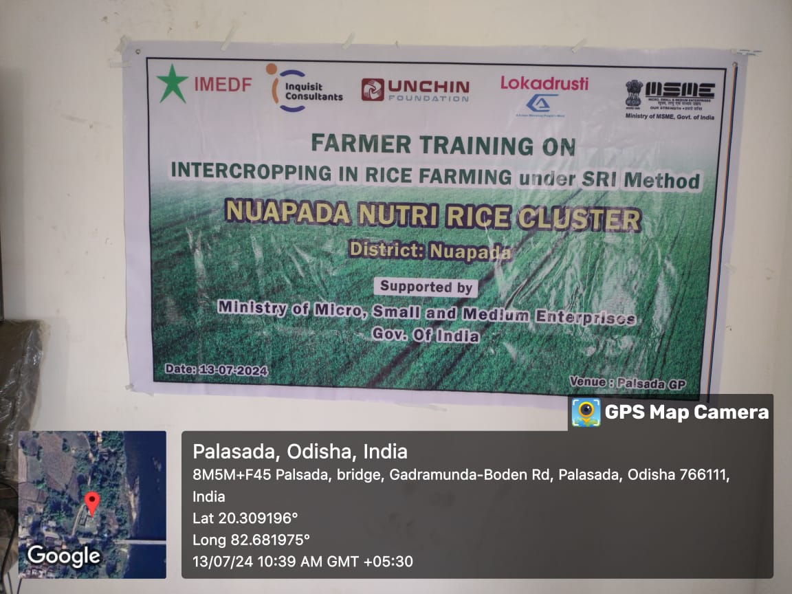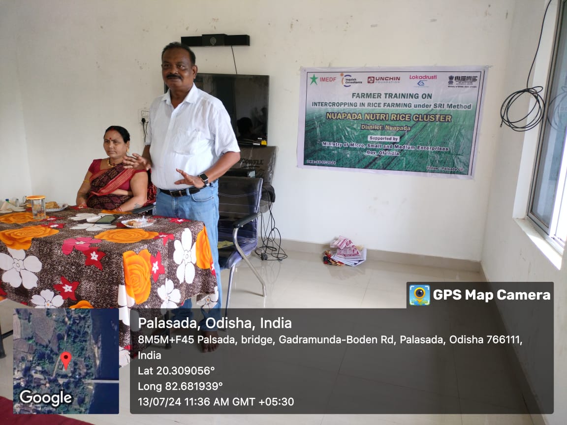 In July 2024, a Farmers Training program focused on Intercropping in Rice Farming using the SRI Method was conducted at Palsada GP, with participation from 35 members. The training was led by two KVK scientists: Laba Soren from KBK Nuapada and Govind Chandra Sahoo, also a scientist. This initiative was organized by the Unchin Foundation (SPV) in collaboration with Lokadrusti (IA), and it included farmers from the Panchayats of Domjhar. Intercropping, which involves cultivating multiple crops simultaneously in the same field, offers numerous advantages for farmers, including: - Enhanced soil health: Intercropping can improve soil characteristics, boost carbon and nitrogen levels, and create habitats for beneficial microbes. - Increased crop yield: This method can lead to higher productivity compared to traditional monoculture practices. - Improved pest management: Intercropping can deter or trap pests while attracting beneficial insects. - Reduced reliance on fertilizers: The practice can lessen the need for synthetic fertilizers as the crops naturally enhance soil fertility. - More efficient resource utilization: Farmers can optimize the use of water, nutrients, and space through intercropping. - Better weed control: This approach can inhibit weed growth in the spaces between rows. - Higher profitability: Secondary crops can yield additional income, providing a safety net if the primary crop fails. - Greater biodiversity: Intercropping contributes to the preservation of biodiversity and ecological balance.